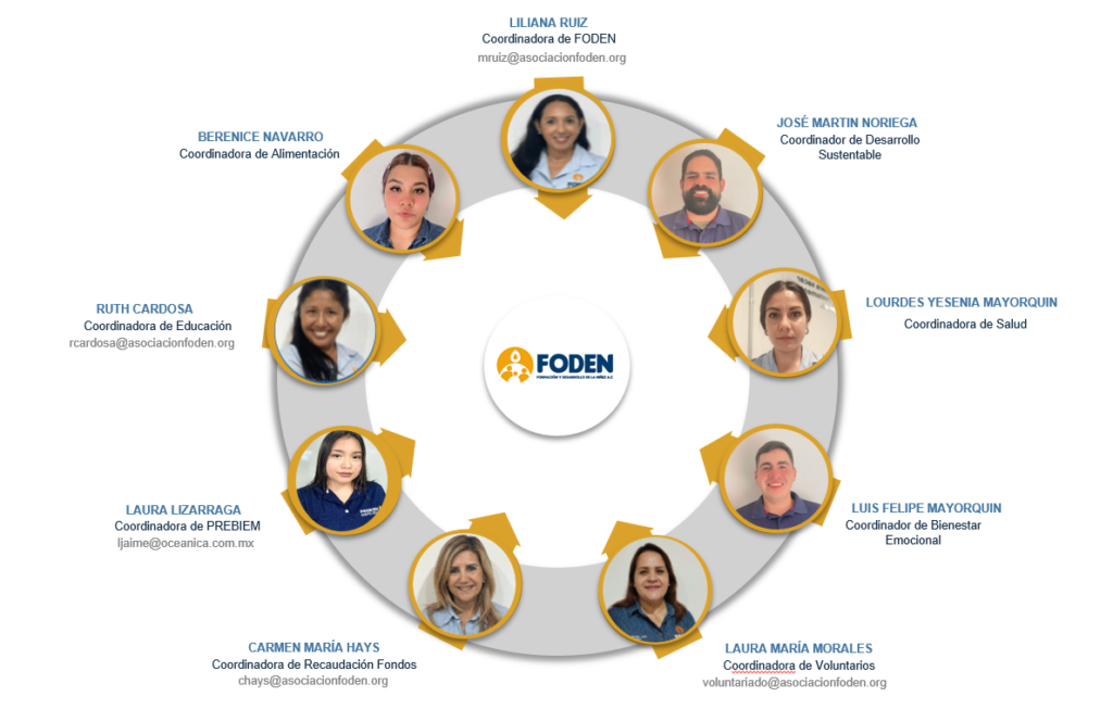 Aquí se presenta nuestro equipo de trabajo, destacando las áreas y roles que colaboran de manera coordinada para el buen funcionamiento de la fundación y el cumplimiento de nuestras metas.